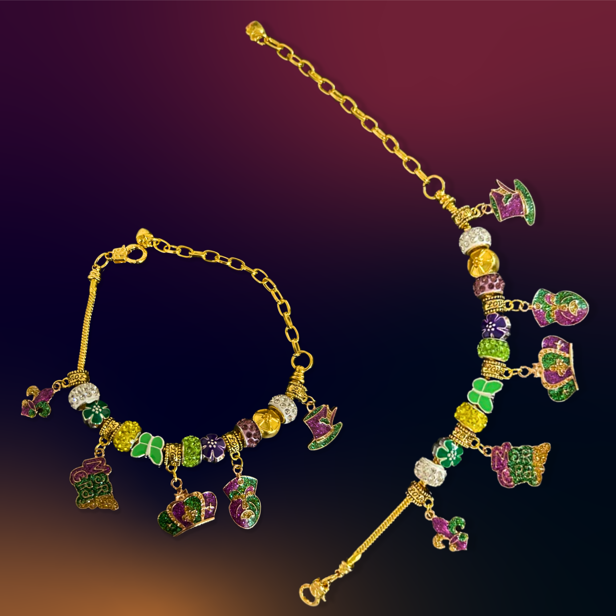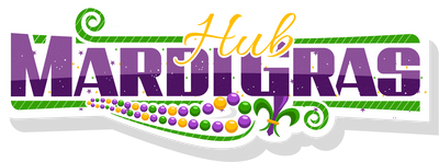 - Large striped bow in traditional Mardi Gras colors: purple, green, and gold